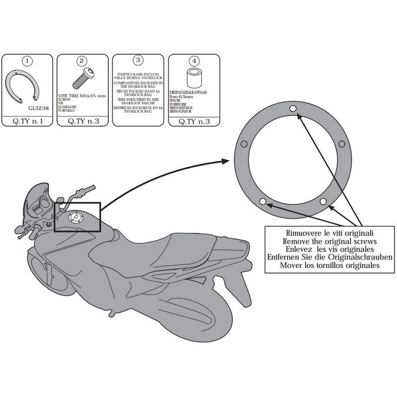 Ngàm gắn túi bình xăng Givi BF27 dùng để gắn túi bình xăng Givi hệ tanklock
