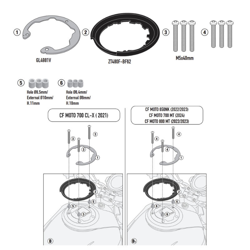 Ngàm gắn túi bình xăng Givi BF72 dùng để gắn túi bình xăng Givi hệ tanklock