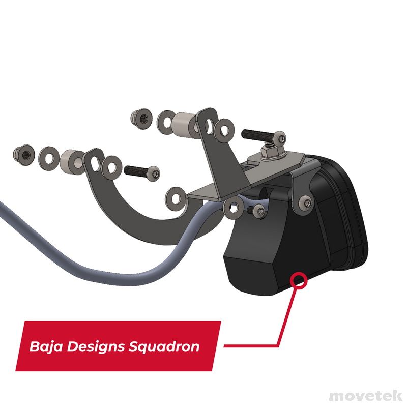 | Type 1 | Phía trước két nước, trên dàn cáo của xe không dùng chống đổ thân trên | Được sản xuất riêng dành cho các dòng đèn Baja Designs Squadron và S2 | <=400g | 2mm | |