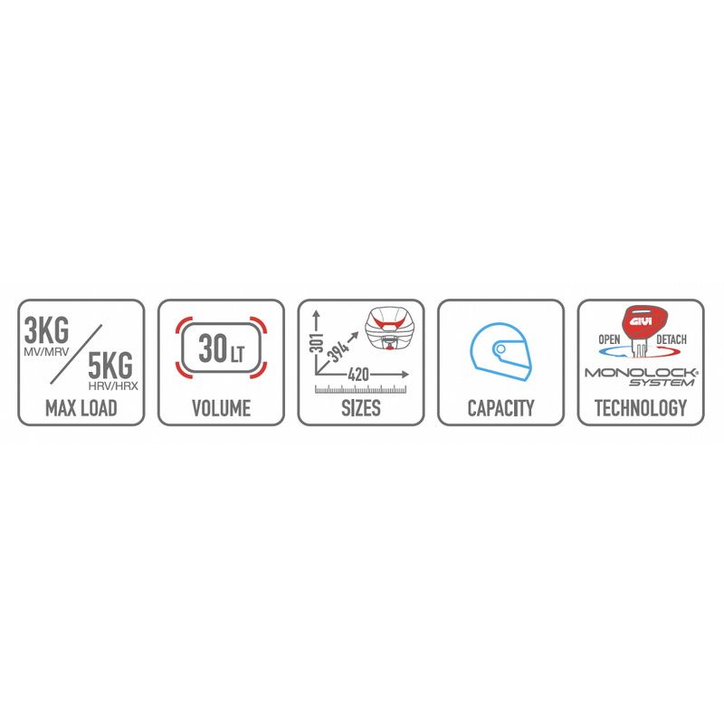 Thùng sau Givi C30 là một mẫu thùng mới nhất của hãng ở phân khúc 20L - 30L. Với thiết kế trẻ trung hiện đại, C30 thay thế hoàn hảo cho E30RN với sự trẻ trung và năng động. Thùng vẫn đủ khả năng chứa một nón bảo hiểm fullface hoặc nhiều vật dụng khác.